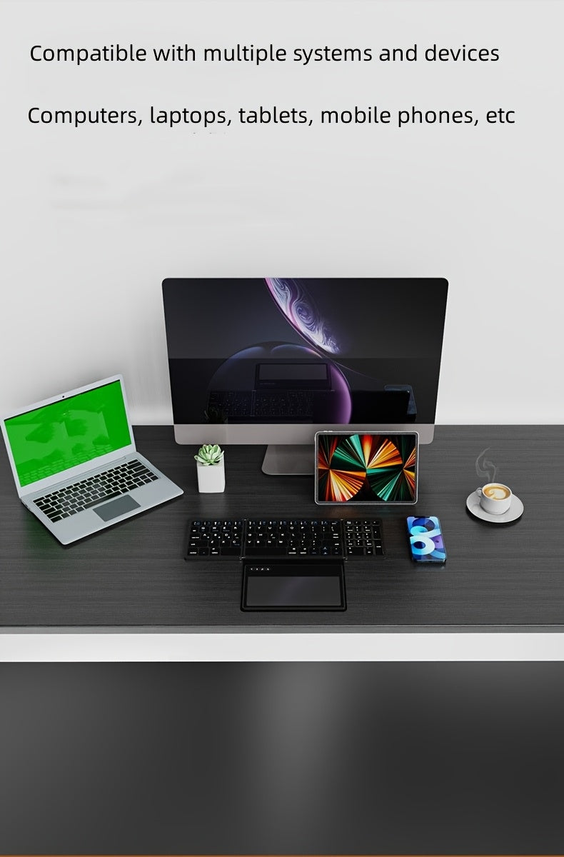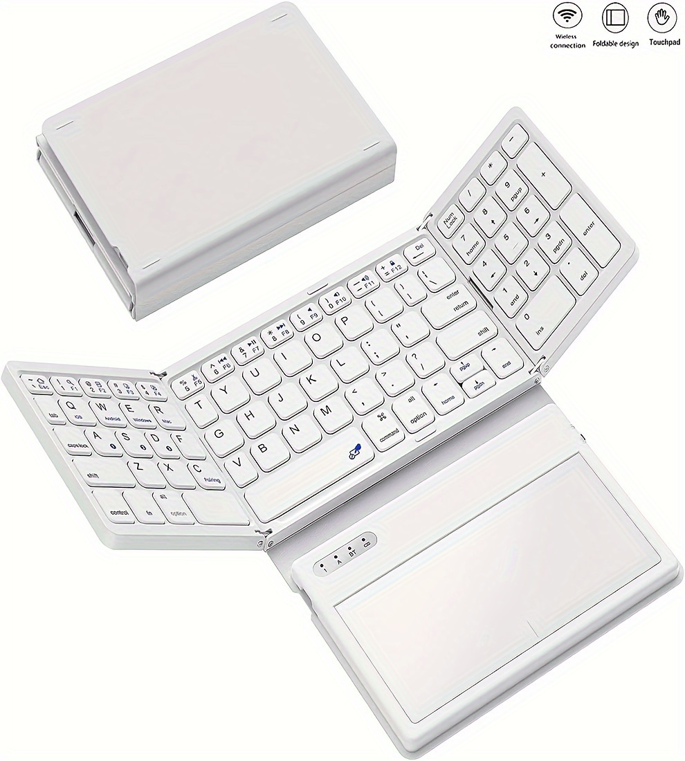 1pc JOMAA Compact Folding Wireless Keyboard for iPad Air 2, Touchpad Design, Windows 10 Compatible, USB Cable Included, Rechargeable Polymer Battery, Smart Hand Orientation, Wireless Connectivity