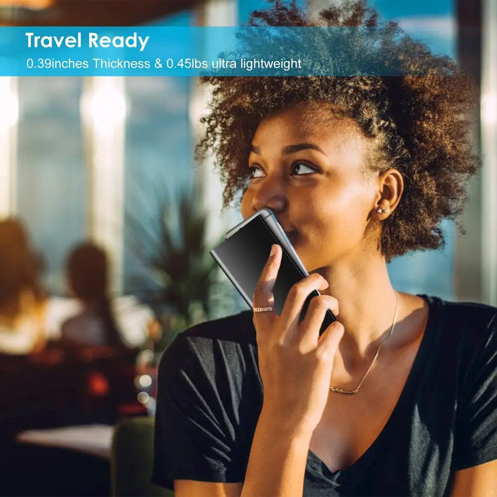 *ULTRA-THIN & BUT STURDY:Possibly the thinnest power bank compressed into 1cm /0.39inches thickness. Chic business style with anti-oxidation treatment aluminum alloy materials,durable and heat- abrasion resistant. Our power bank is optimal for travelling and working. Ultra-slim design is easy to hold.