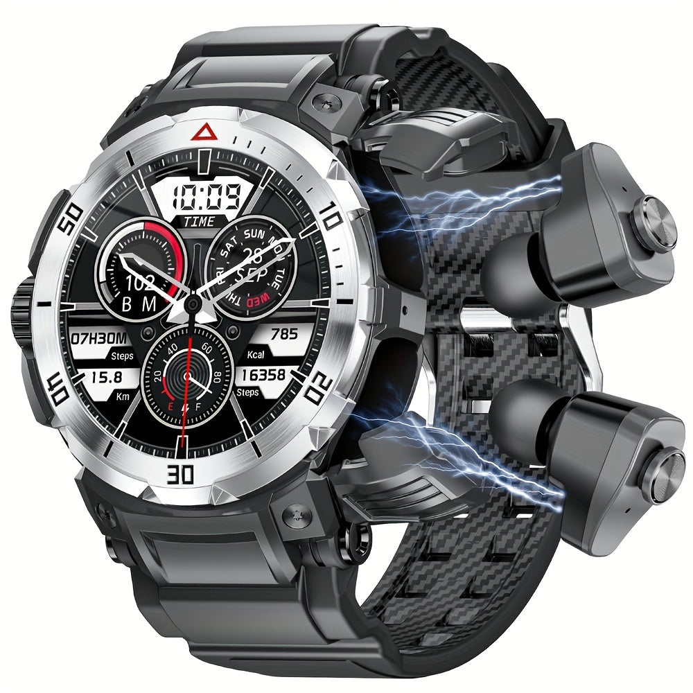2025 New 3-In-1 Smartwatch with Wireless Earbuds for Men, Music And Fitness Features, 1.46-Inch HD Display, Call Functionality, Speaker, Recording, Sports Tracker, Compatible with Ios And Android, Long Battery Life