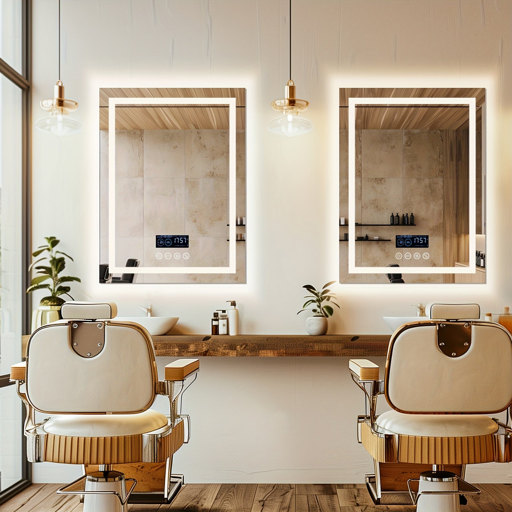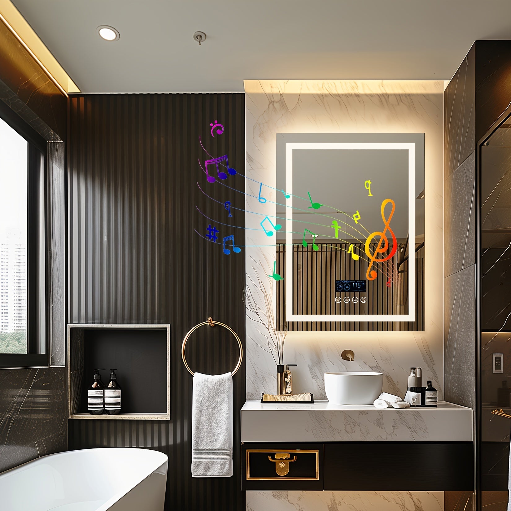 28" X 36" LED Lighted Bathroom Mirror Lighted Bathroom Music Mirror With Dual LED Light Strips Smart Wall Vanity Mirror, Front-lit, Dimming, Date And Time
