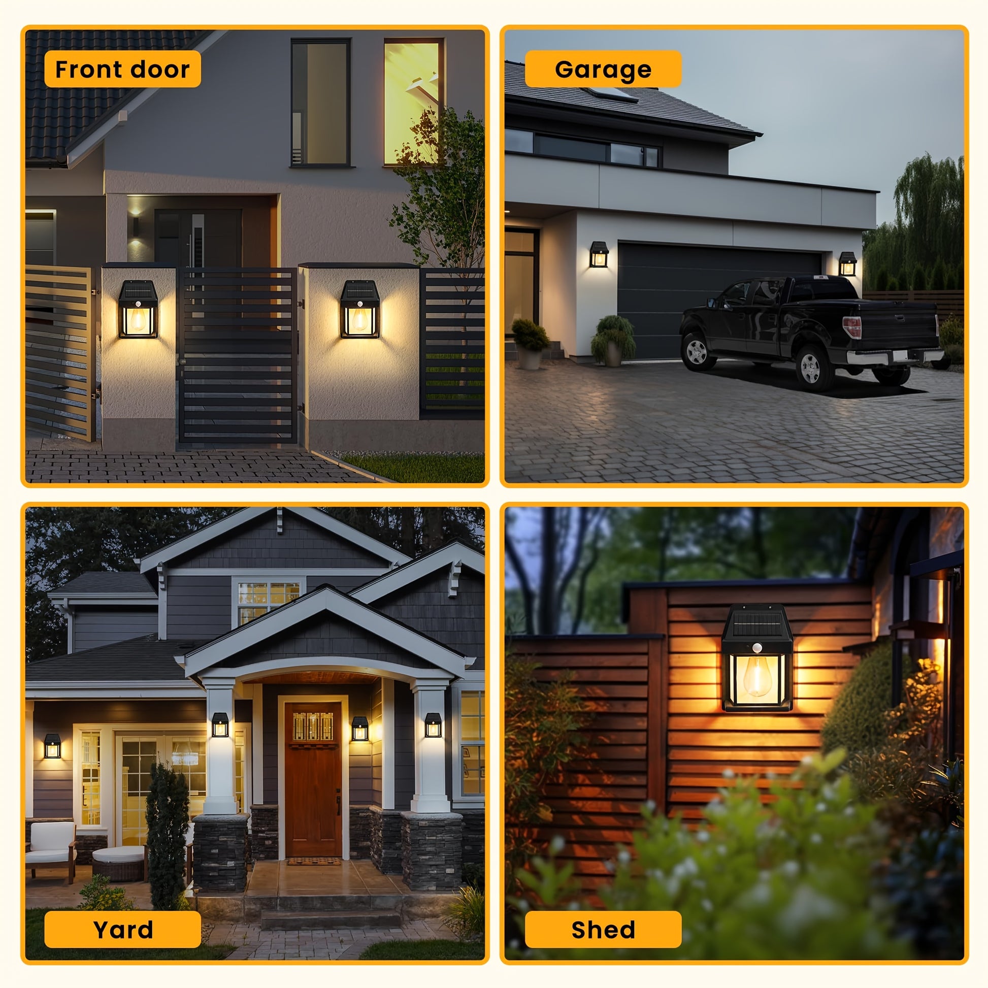 2pcs Solar Wall Lights Outdoor, Dusk to Dawn Motion Sensor Lights Waterproof, 2pcs Motion Sensor Solar Porch Lights with 3 Modes, for Patio, Garage, Shed, Solar Lights for Outside, Outdoor Solar Lights Waterproof, Garden Ligh