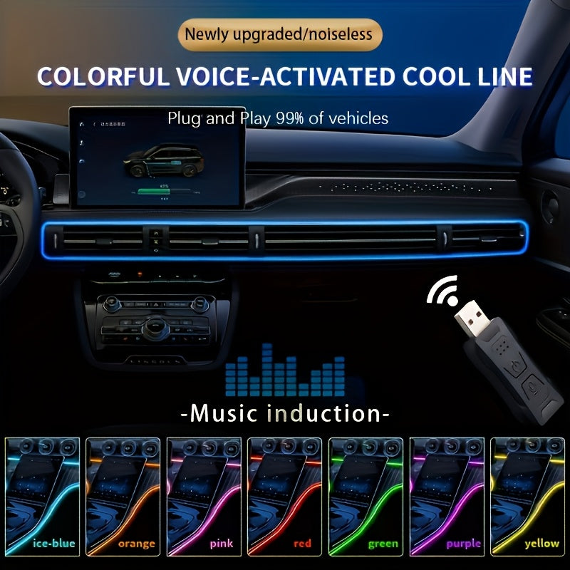 3m/118in Interior Automotive Neon (center Console + Dashboard) With Matching Armrest Storage Box, RGB LED Light Strips For Environmental Application Control, Without Battery