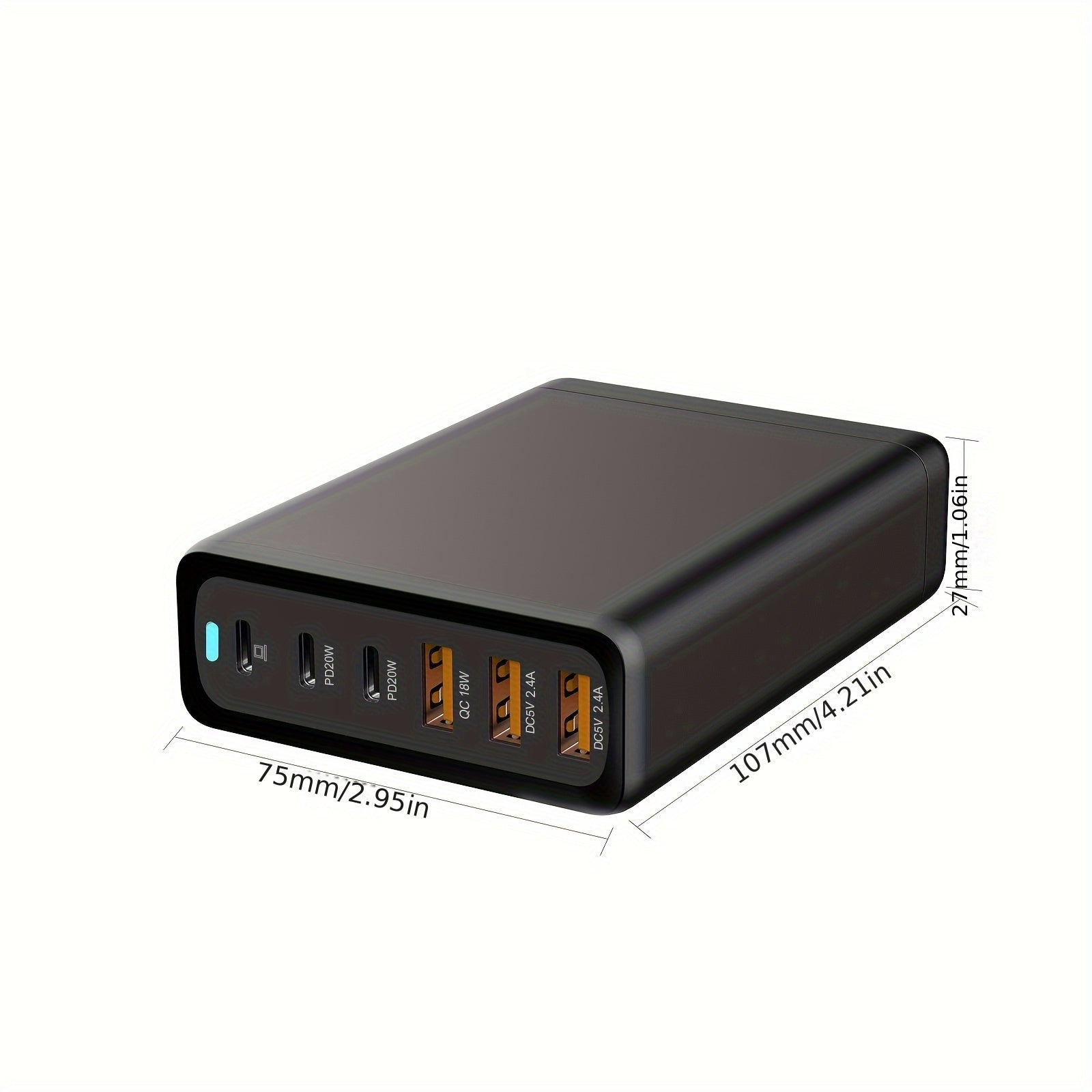 6-Port PD Fast Charger - Rapid Charging, Compact, and Foldable - Compatible with MacBook Pro/Air, iPad Pro, iPhone 14/13/12, Galaxy Note20 S22, Pixel with 5Ft AC Extension Cord