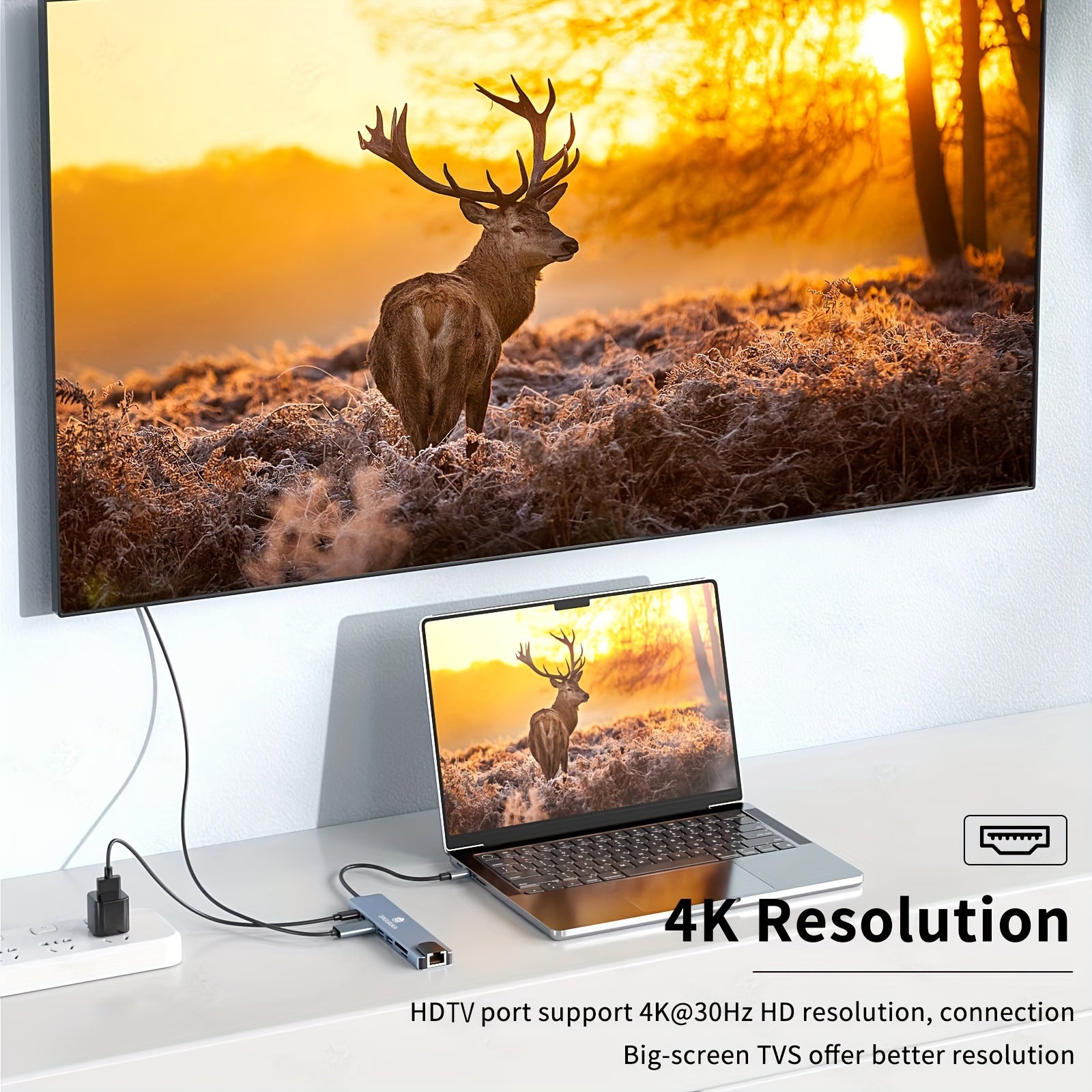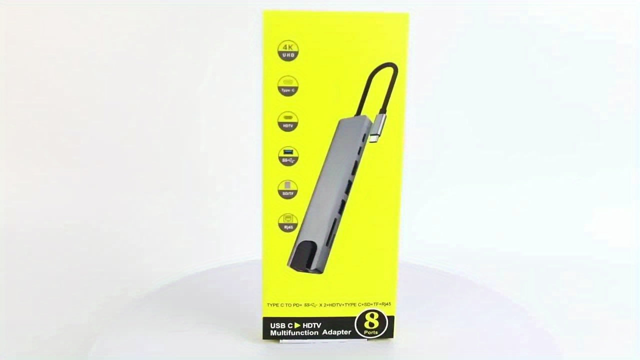 8 in 1 USB C Hub Type C to 4K HDTV Adapter with 100M RJ45 SD/TF Card Reader Fast Charger for MacBook Notebook Windows Laptop Computer