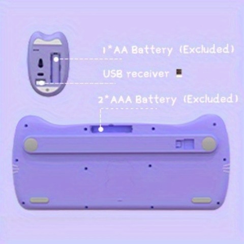 Cute keyboard and mouse requires 2 AAA batteries(keyboard) and 1 AA battery(mouse), equipped with a nano receiver, only one USB interface is required, plug and play, no other drivers are required.