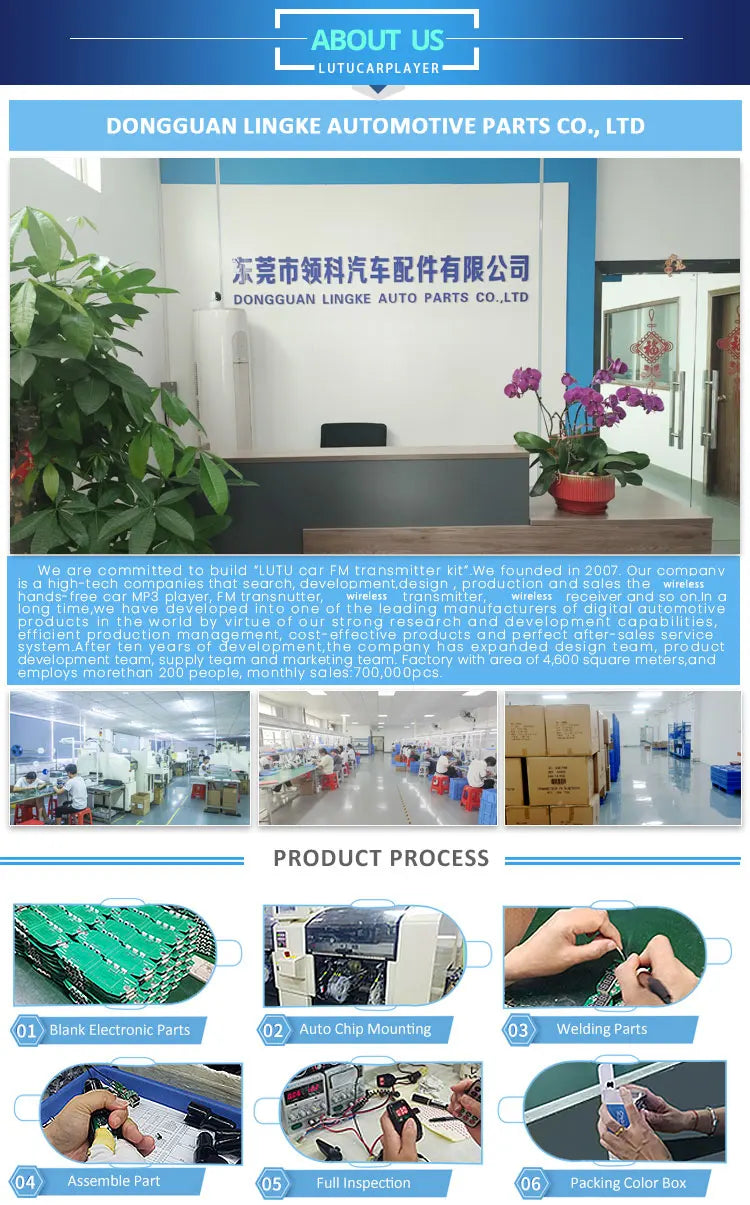 Functions: U disk, AUX in, FM, Bluetooth music, voice navigation, dual USB fast charging,