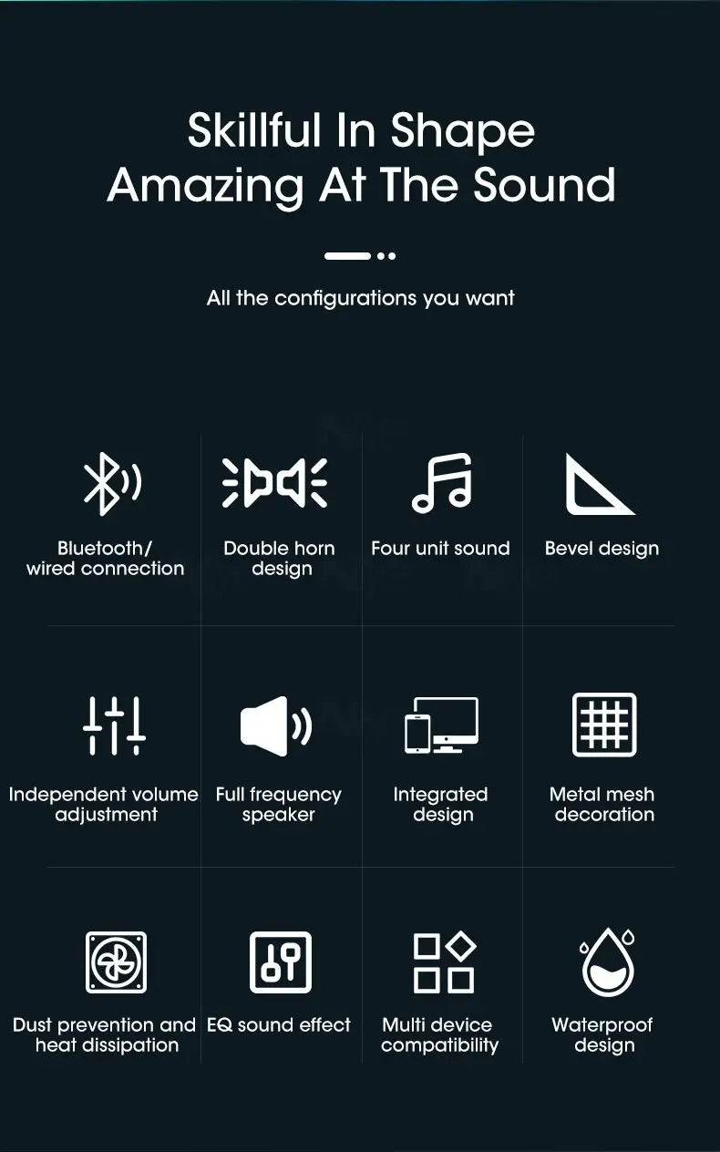 Bluetooth Computer Speakers Wired Surround Sound Bar Stereo Subwoofer Soundbar for Desktop Laptop PC Mini Home Theater System