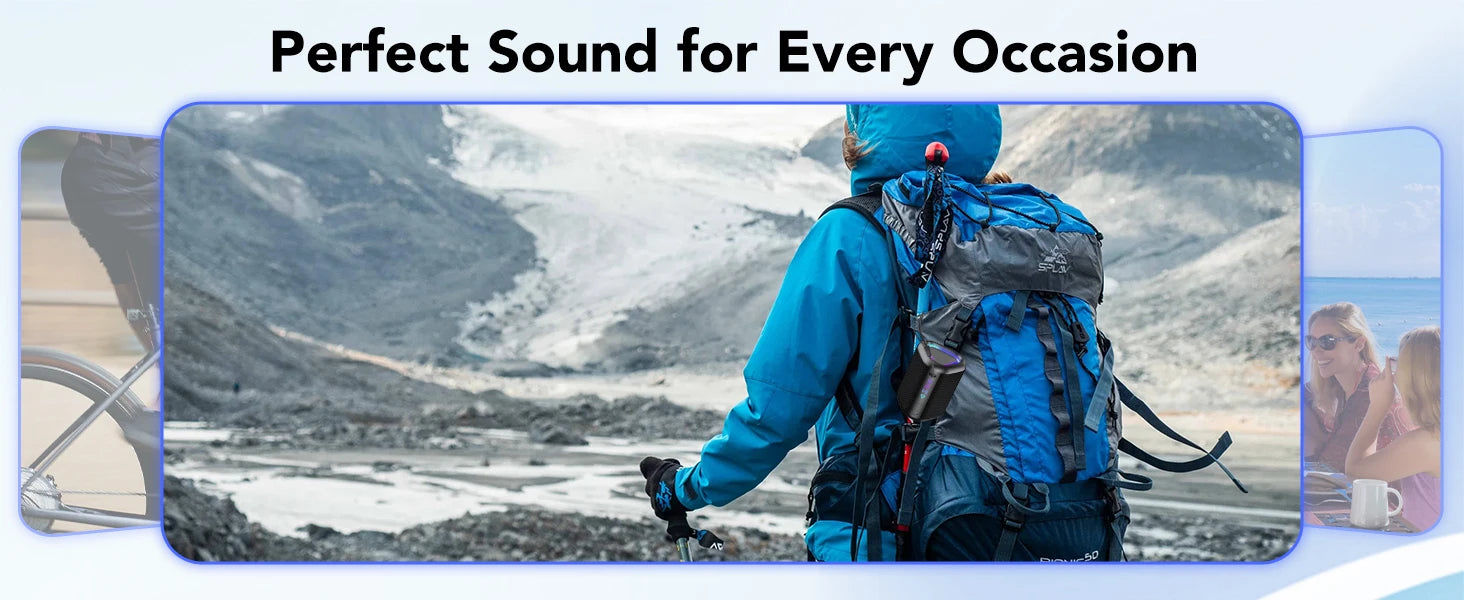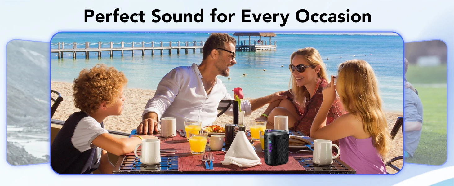 The Bluetooth 5.4 technology ensures that your music streams without interruptions. With a range of up to 100ft / 30m in open spaces, this portable speaker maintains a strong, stable connection even in larger areas. Whether you’re outdoors at a park, at the beach, or in a large office, the speaker’s Bluetooth connection ensures a smooth experience. The quick pairing function allows you to connect with devices like smartphones, tablets, and laptops without any hassle. This feature is perfect for those who want to enjoy music without worrying about constant connectivity issues (Not compatible with Amazon Echo series products and Alexa devices)