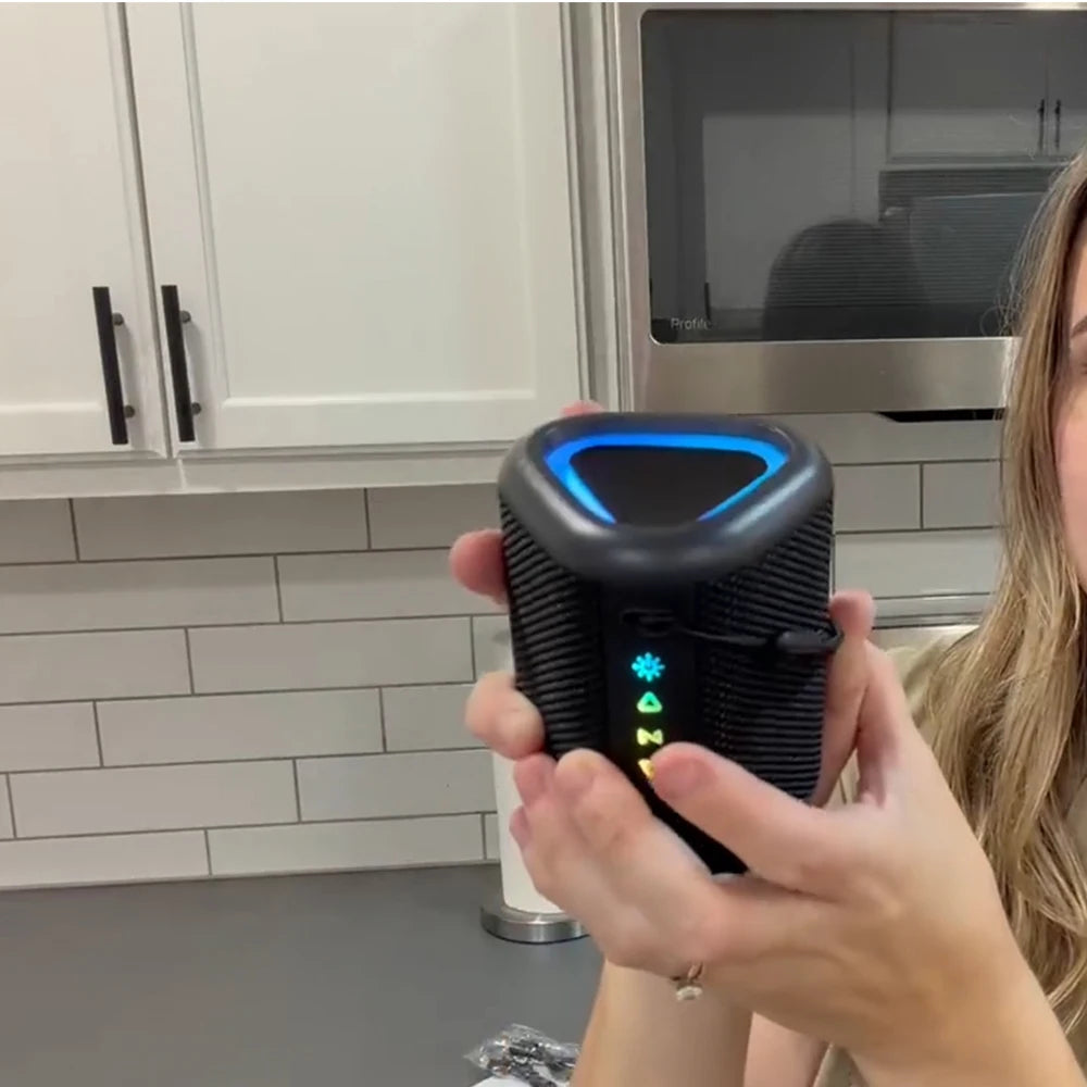 Portable speaker has seven kinds of dazzling colourful glowing, multiple ambient lighting effects, the lights will dance to the rhythm of the music, so that every bass, midrange and treble in the music has an excellent lighting rhythm, and also support the TWS mode, when you play games, enjoy music or watch movies, you can enjoy the true wireless stereo function to really enjoy the cinema surround sound, and you can switch off the lights whenever you need to.