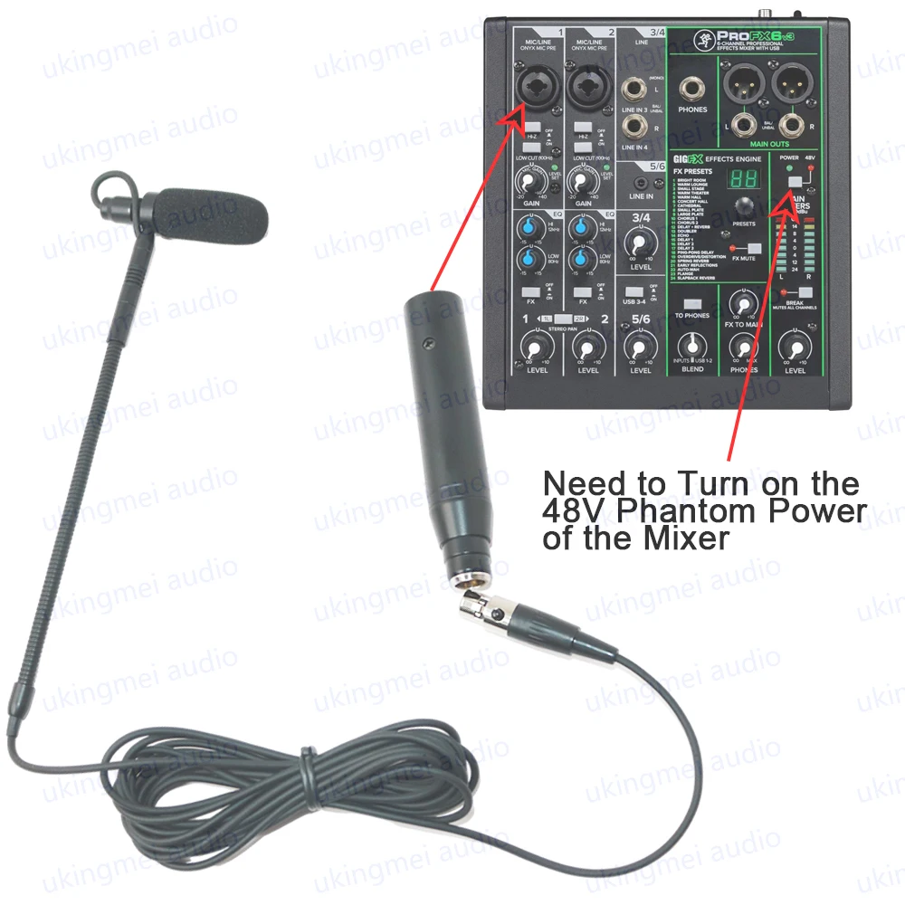 Clip-On Musical Instrument Microphone for Piano Guitar Saxophone Violin Cello Phantom Power Input Flexible Gooseneck Microphone