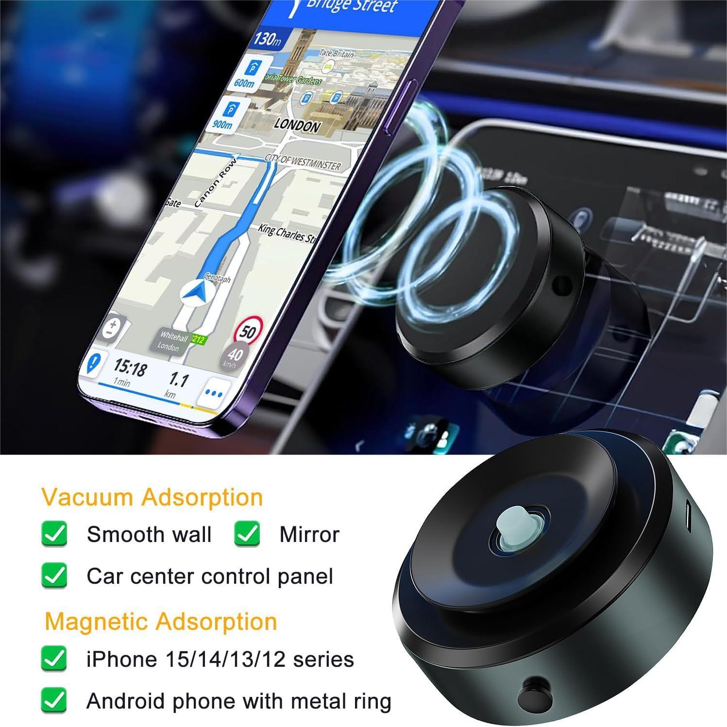 Electric Vacuum Magnetic Suction Car Phone Mount, Strong suction for Car Kitchen Mirro Gym Bath Shower & All Smooth Surface, Portable&Easy to use, Compatible with iPhone & Android (Black)