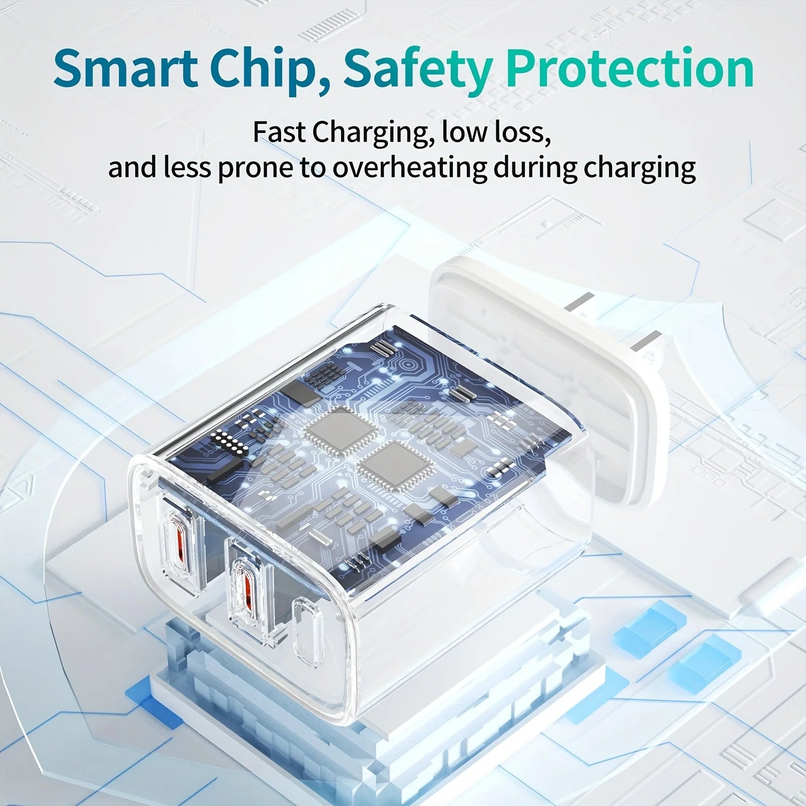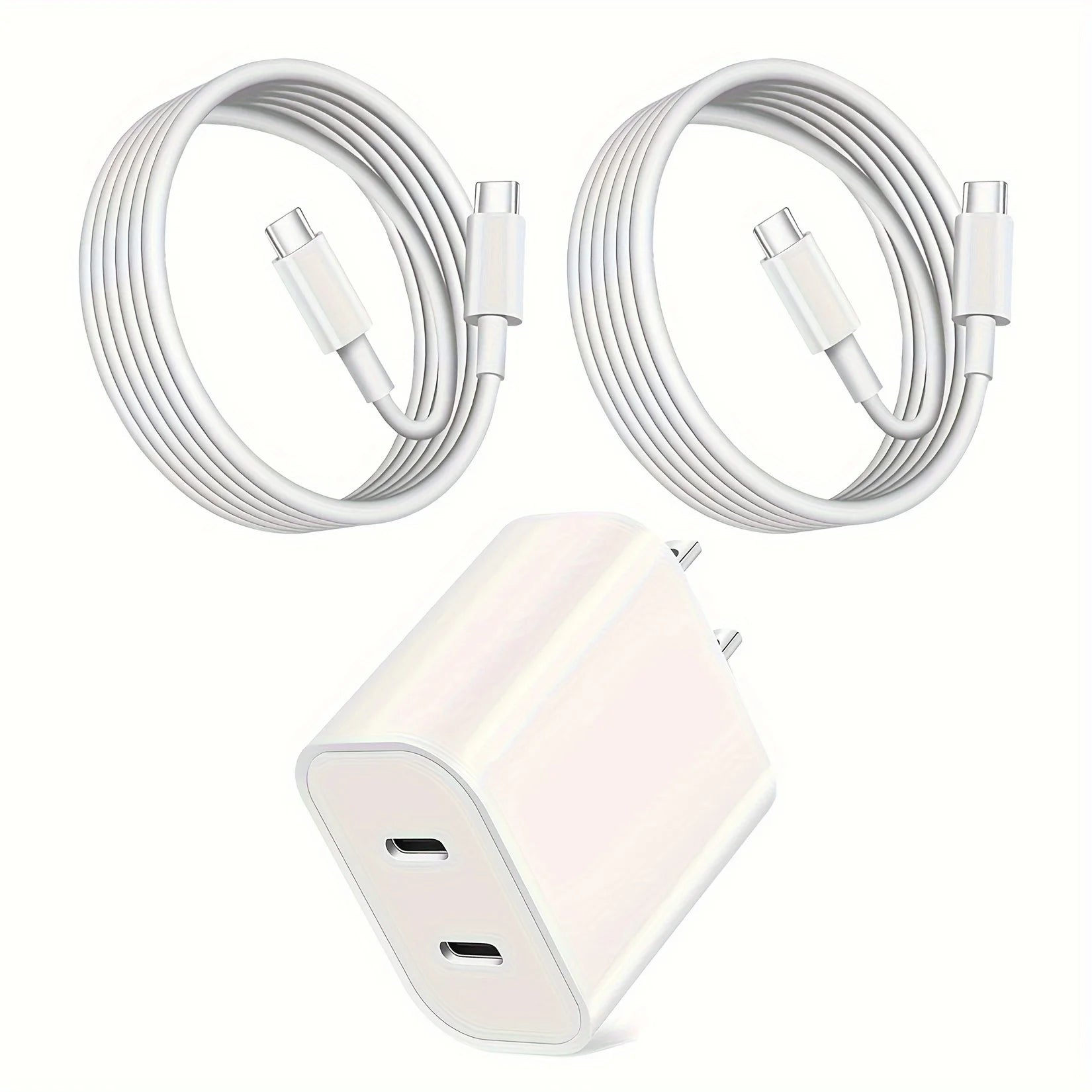Fast Charger Block PD20W Power Adapter Dual Type C Port Cube for iPhone 15 Series(2Pack 6ft USB-C to C Charging Cables Included)