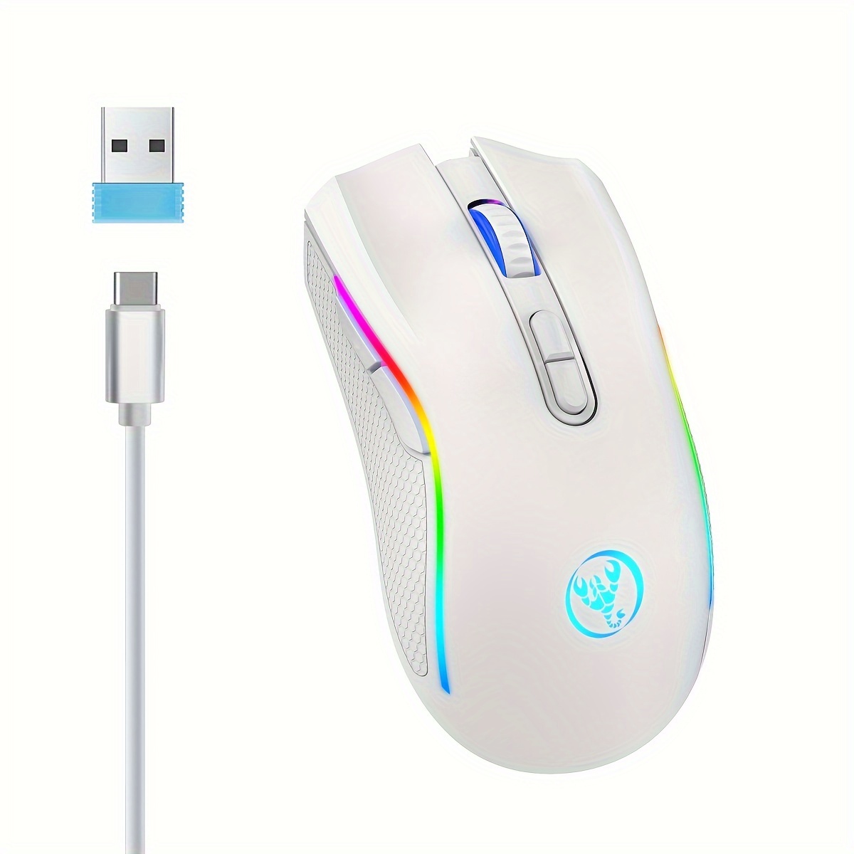 HXSJ RGB Wireless Mouse - 2.4G, Rechargeable with USB Plug & Play, Adjustable DPI up to 4800, Optical Sensor for Gaming and Office Use, Black/White