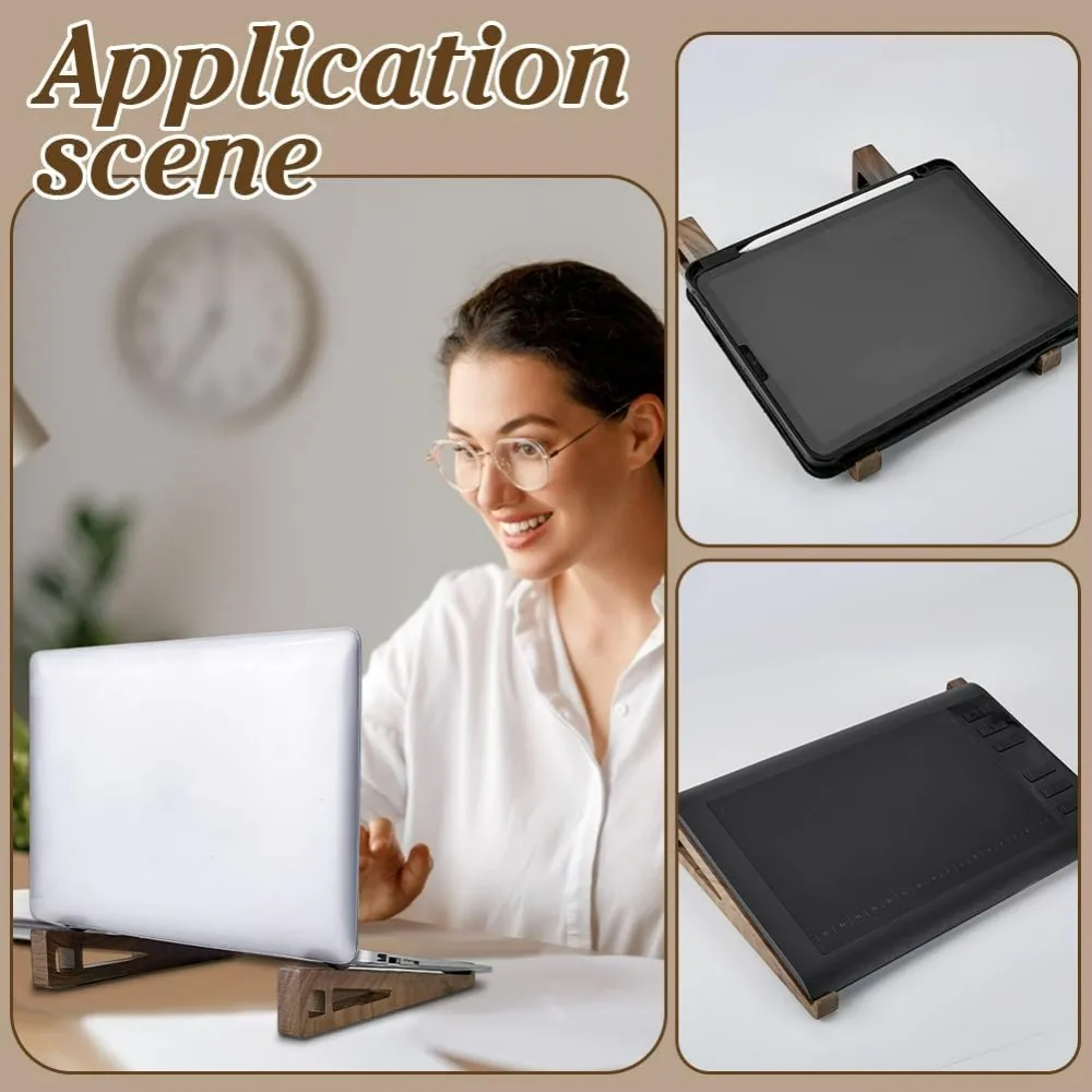 Ergonomic Design: the wood laptop stand raises the laptop screen by 2 inches to create a viewing comfort zone, also helps correct your posture and reduces shoulder, neck, , spine and wrist discomfort, it can make you enjoy a comfortable work experience