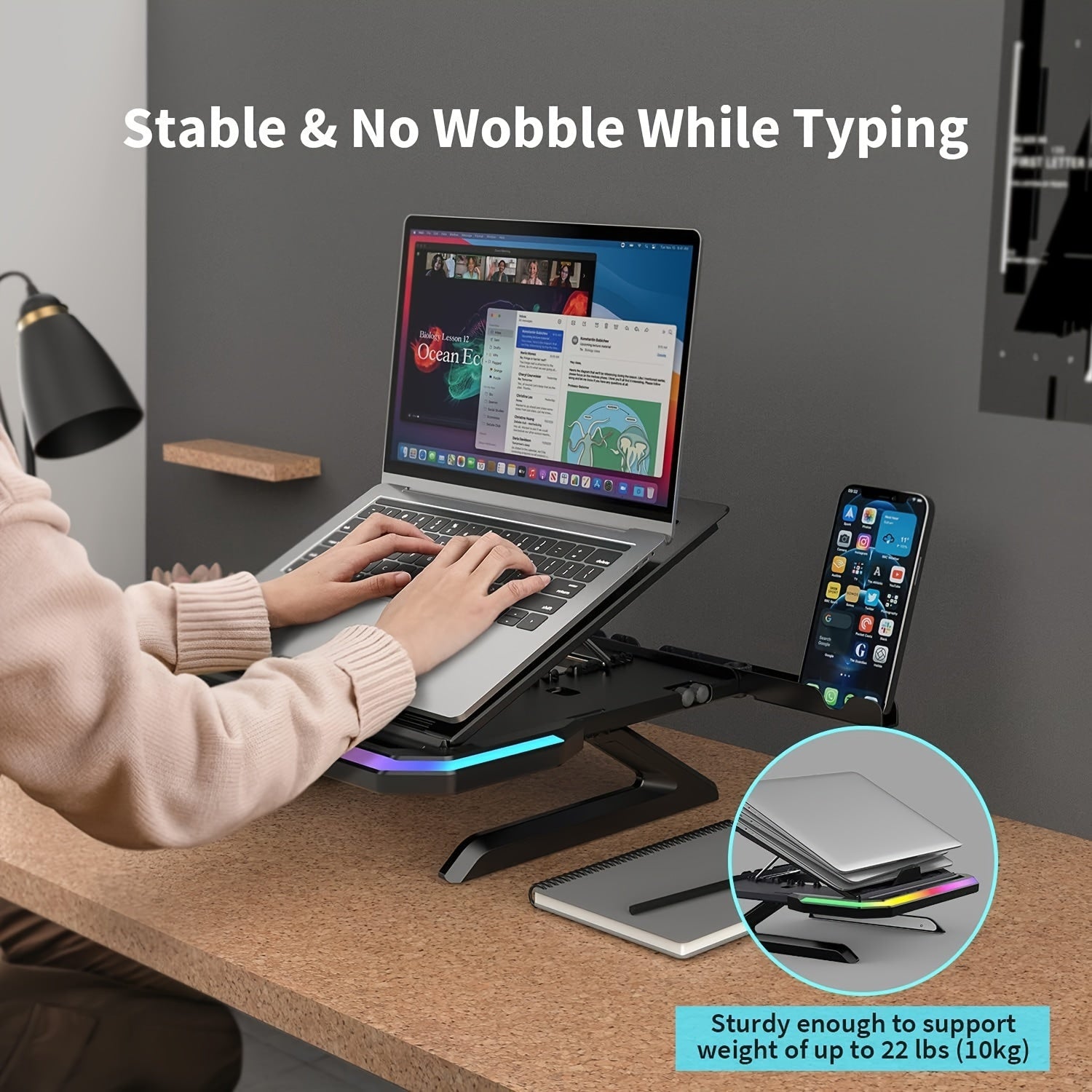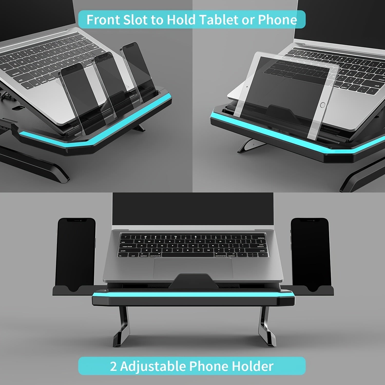 Laptop Stand With Two Mobile Phone Holders Height-Adjustable Notebook Stand With RGB Lighting Laptop Holder Compatible With MacBook Surface Samsung Dell 10-17 Inch Laptops