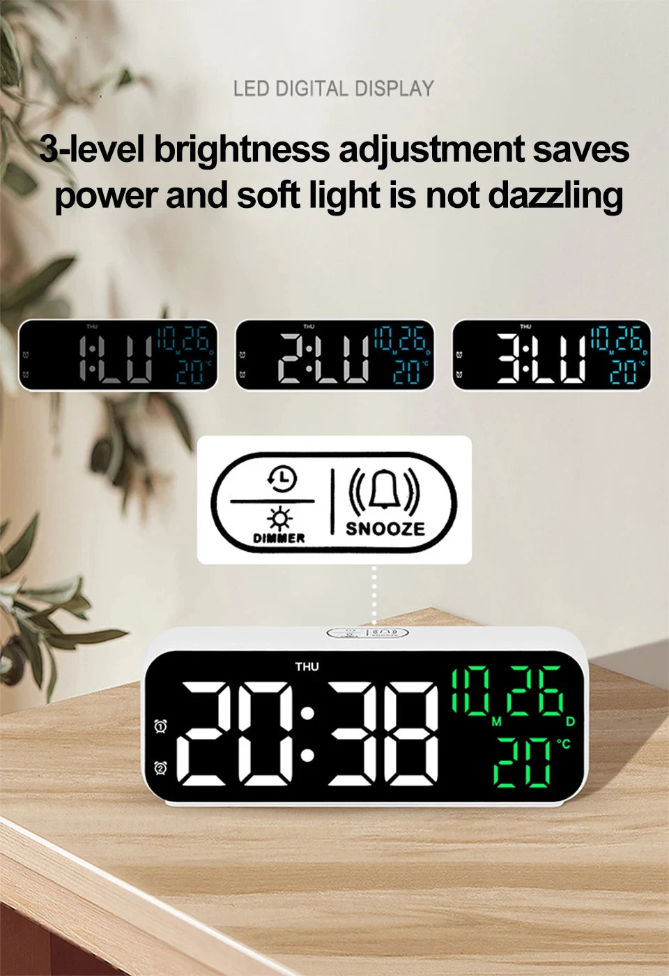 LED Digital Clock Temperature Date Week Display Desktop Clock 3 level Brightness Adjustment Voice Control Countdown Alarm Clock