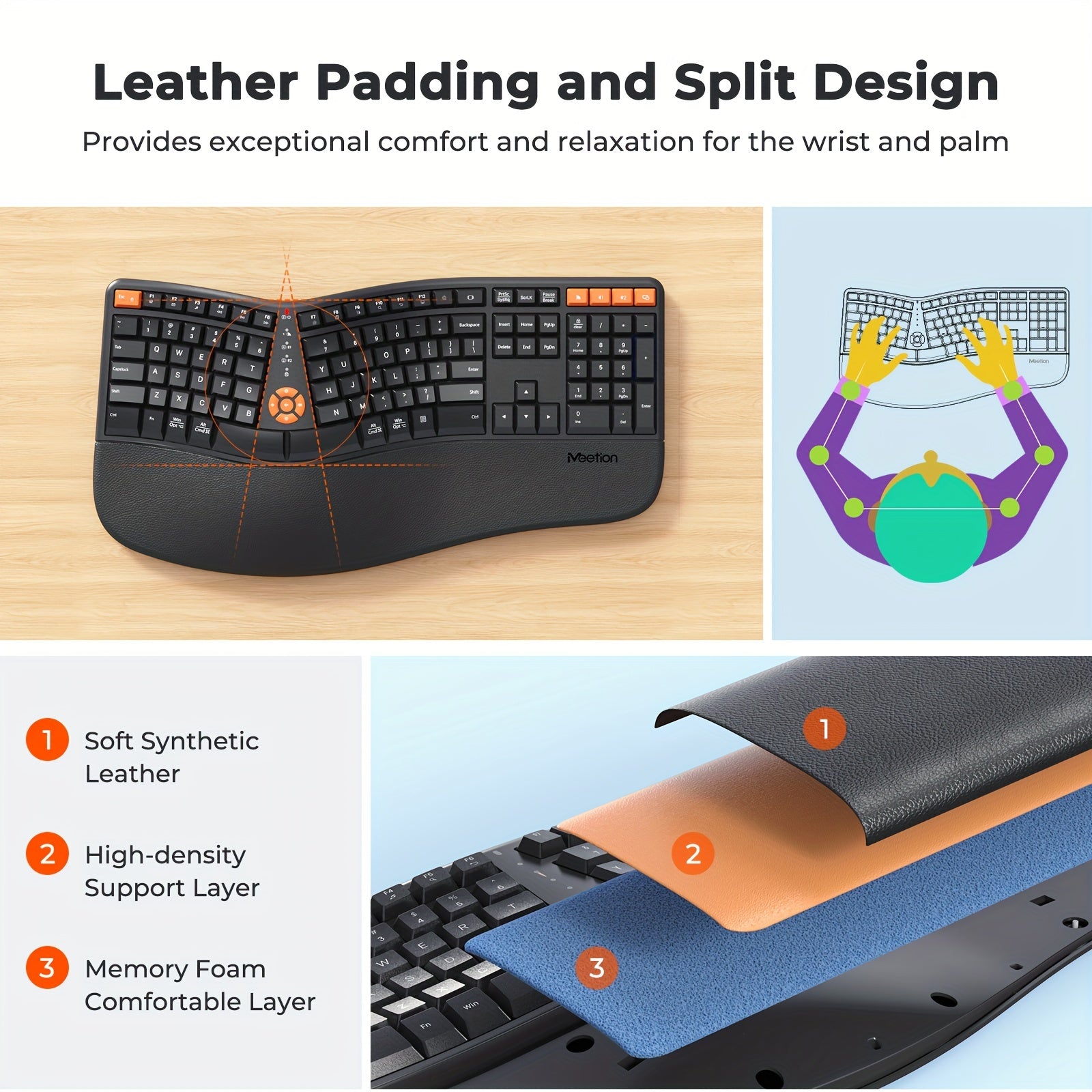 MEETION Ergonomic Keyboard And Mouse Wireless Combo, BT/2.4G Ergo Split Keyboard With Palm Rest, Adjustable Wireless Mouse, Rechargeable Keyboard Mouse For Windows/Mac/Android Halloween Christmas Gift