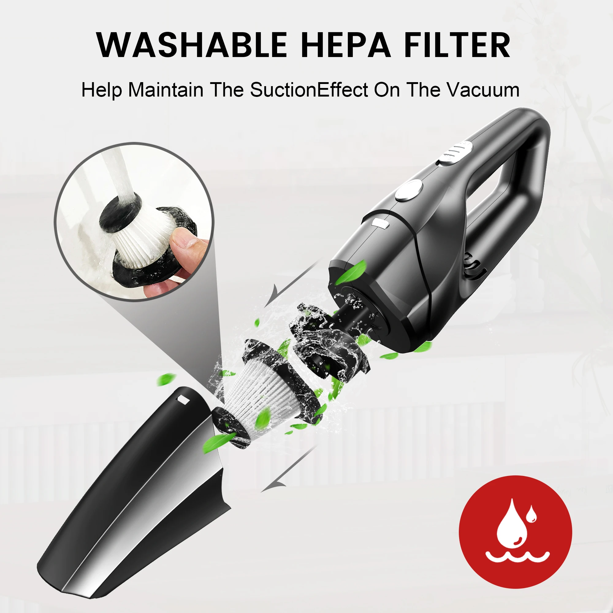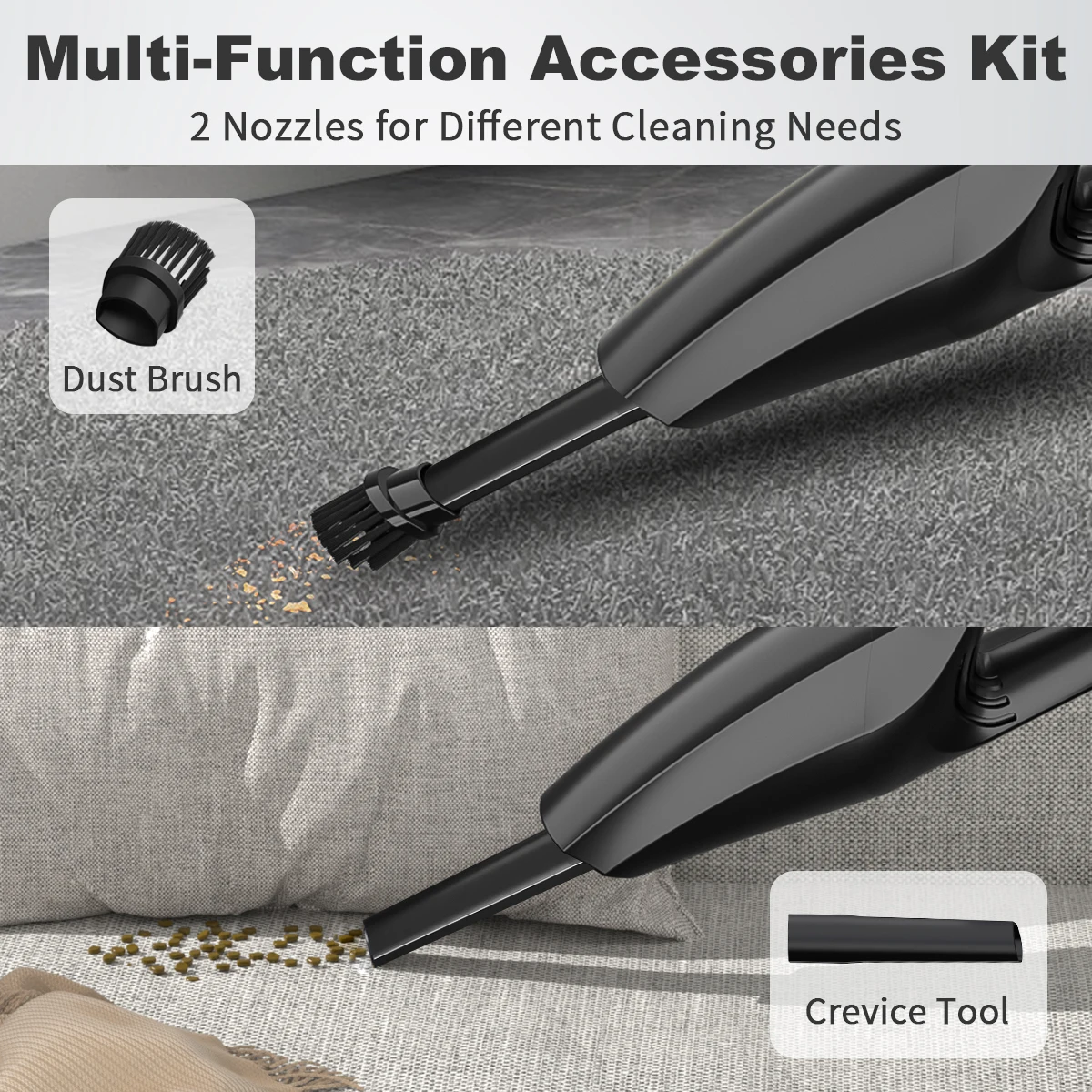 PROFESSIONAL ATTACHMENT SET: Dust Buster comes with 2 attachments. Crevice nozzle - Ideal for cleaning crevices, seams or car interiors; Brush nozzle - Easily removes stubborn pet hair from cushions or upholstered furniture. HEPA with multiple filtration system. When the HEPA filter becomes dirty, the suction power of the vacuum cleaner will be reduced or even stop working. Please clean it promptly.
