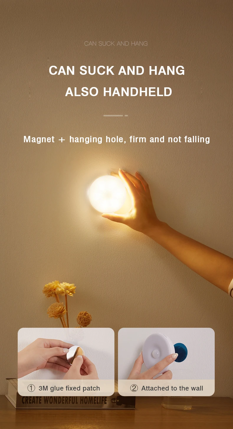 1. Motion sensor light Indoor Rechargeable will turn on automatically when you come close within 3-5M and automatically turns off 30 seconds after motion stops. Ideal for hallways, Closet Rooms, stairways, basements and many more commercial or residential applications. Get your life more convenient!