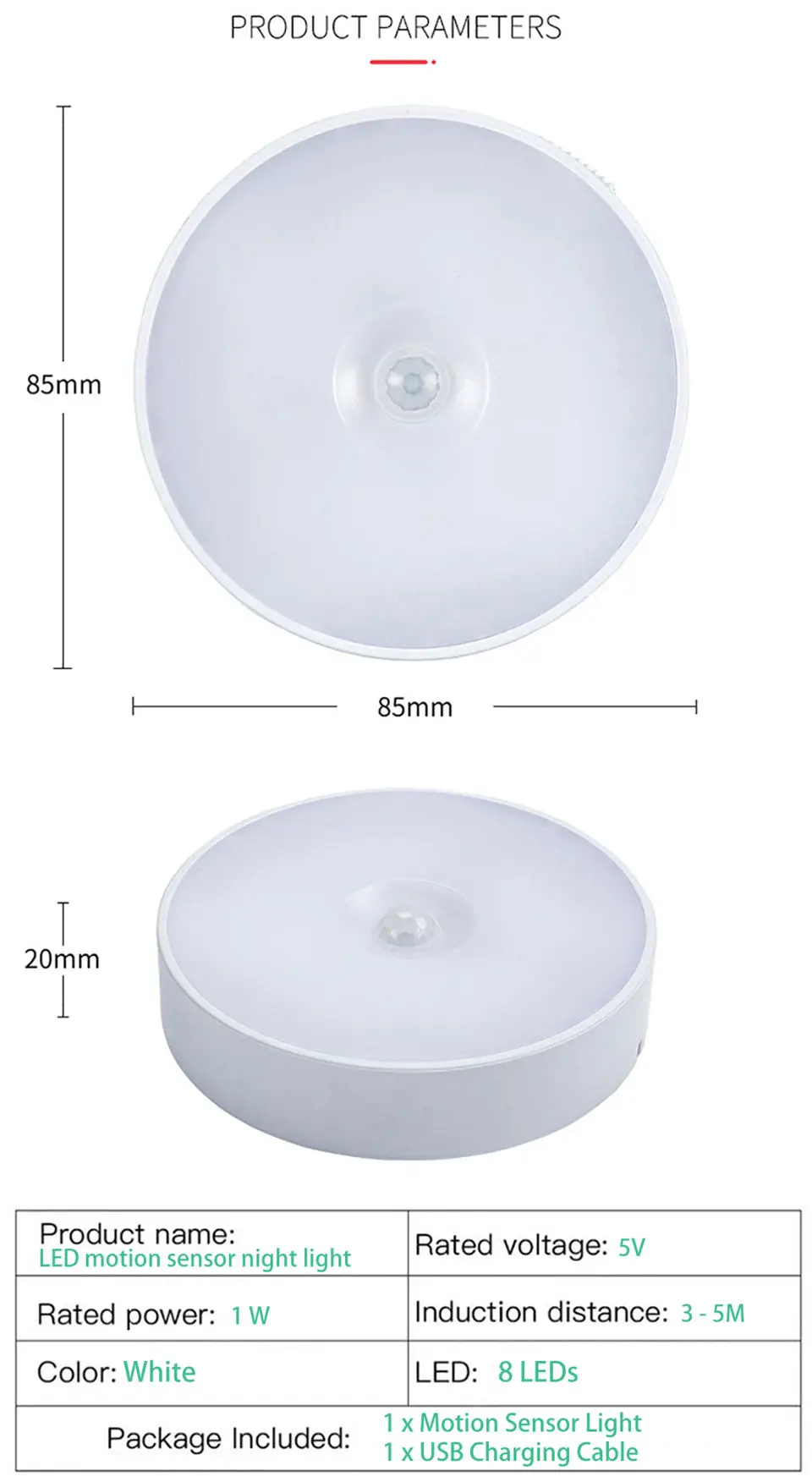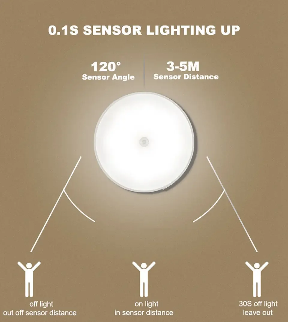 1. Motion sensor light Indoor Rechargeable will turn on automatically when you come close within 3-5M and automatically turns off 20 seconds after motion stops. Ideal for hallways, Closet Rooms, stairways, basements and many more commercial or residential applications. Get your life more convenient!