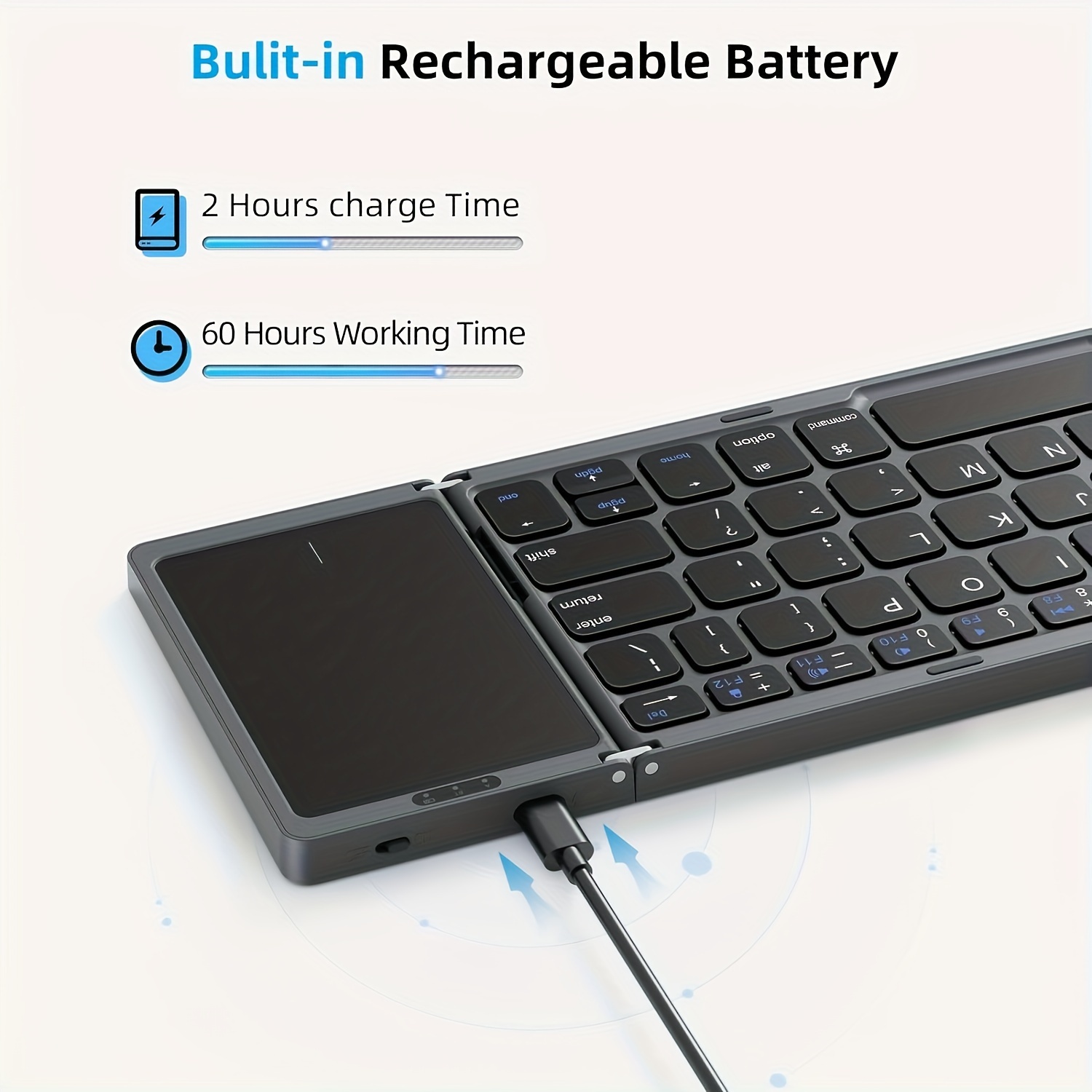 OMOTON Foldable Wireless Keyboard With Touchpad, Wireless Folding Keyboard, Multi-Device And Rechargeable, Portable Keyboard For IPad, IPhone, Android, Windows Laptop, Desktop, Tablet And PC (Grey)