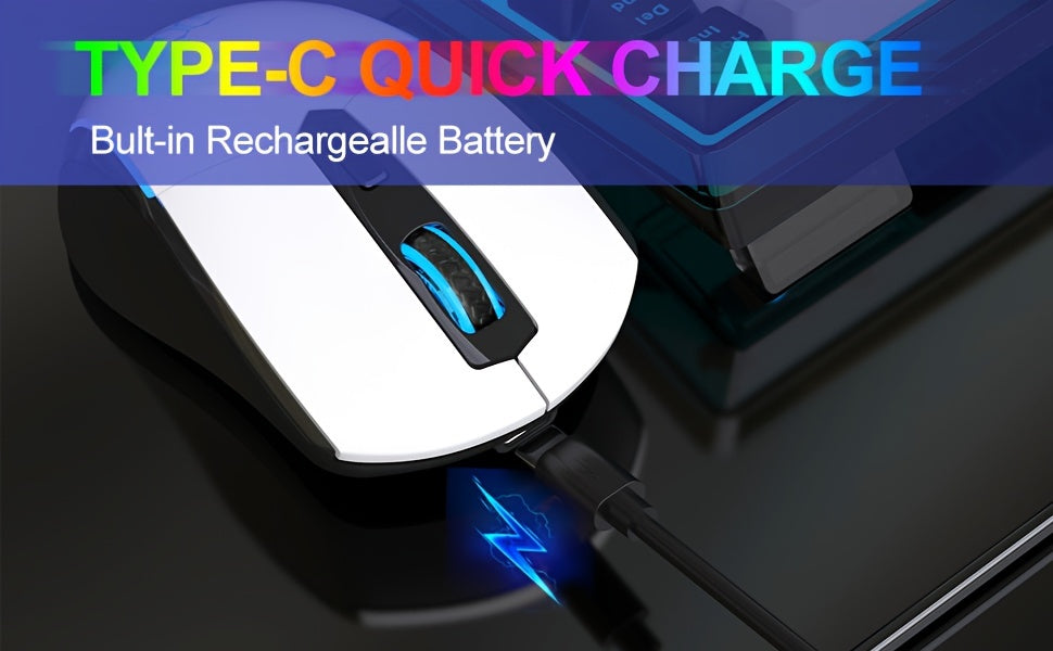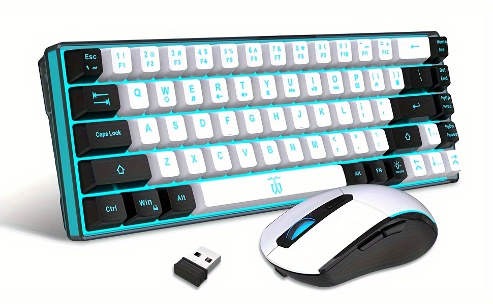 Snpurdiri 60% Wireless Gaming Keyboard and Mouse Combo, Ice Blue Backlit, Rechargeable 2000mAh Battery, Compact Anti-Ghosting Design, Includes RGB Mice for PC & Laptop - White & Black, Gaming Accessories | Compact Keyboard La