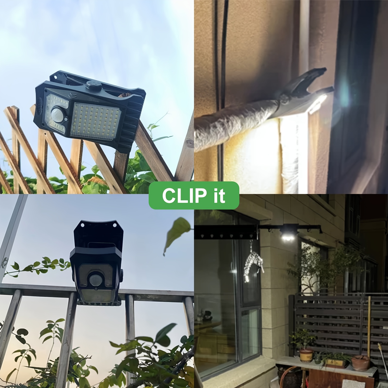 Tryme 90LEDs Solar Lights Outdoor Clip Motion Sensor Lights 3 Modes 3 Mounting Ways Security Light For Chain Link Fence Camping Gate (2 Pack)