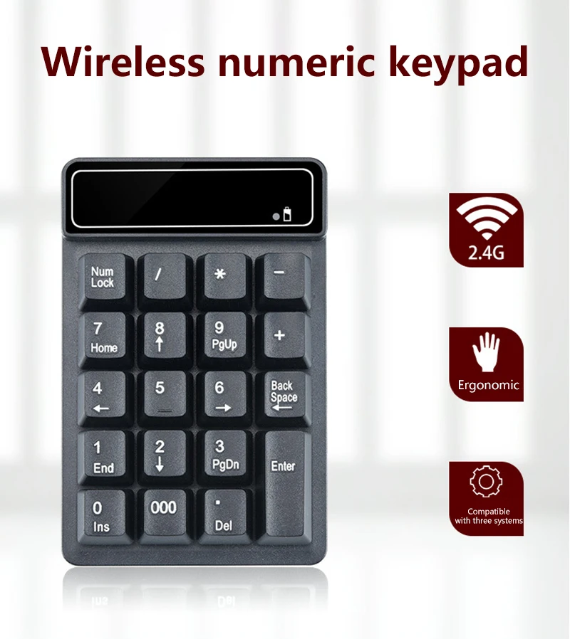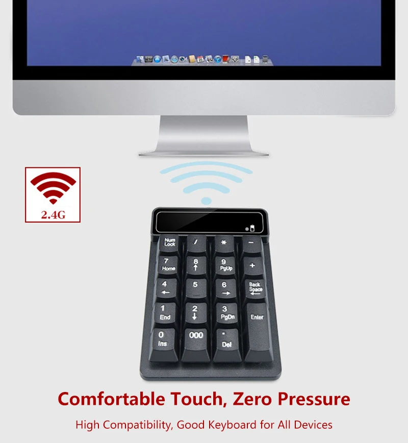 Wireless Digital Keypad With Mechanical Feel 19 Keys 2.4G Mini Keyboard Waterproof Ergonomic Multi System Compatibility Keyboard