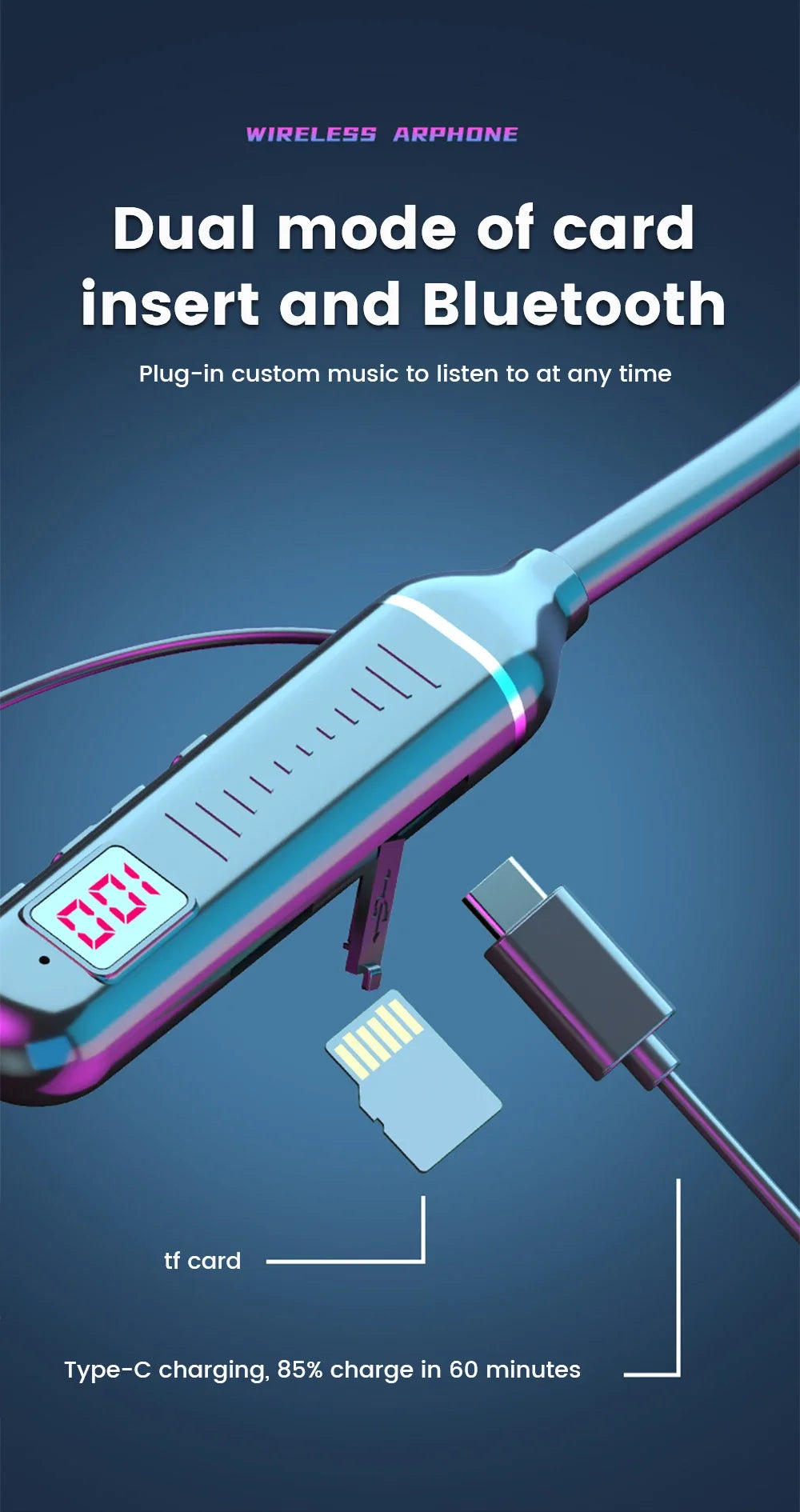 Wireless Earphones 5.3 Neckband Headphones Gaming LED Display Stereo Sports Headset Halter Waterproof Magnetic Earbuds