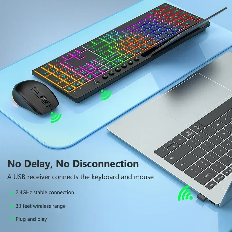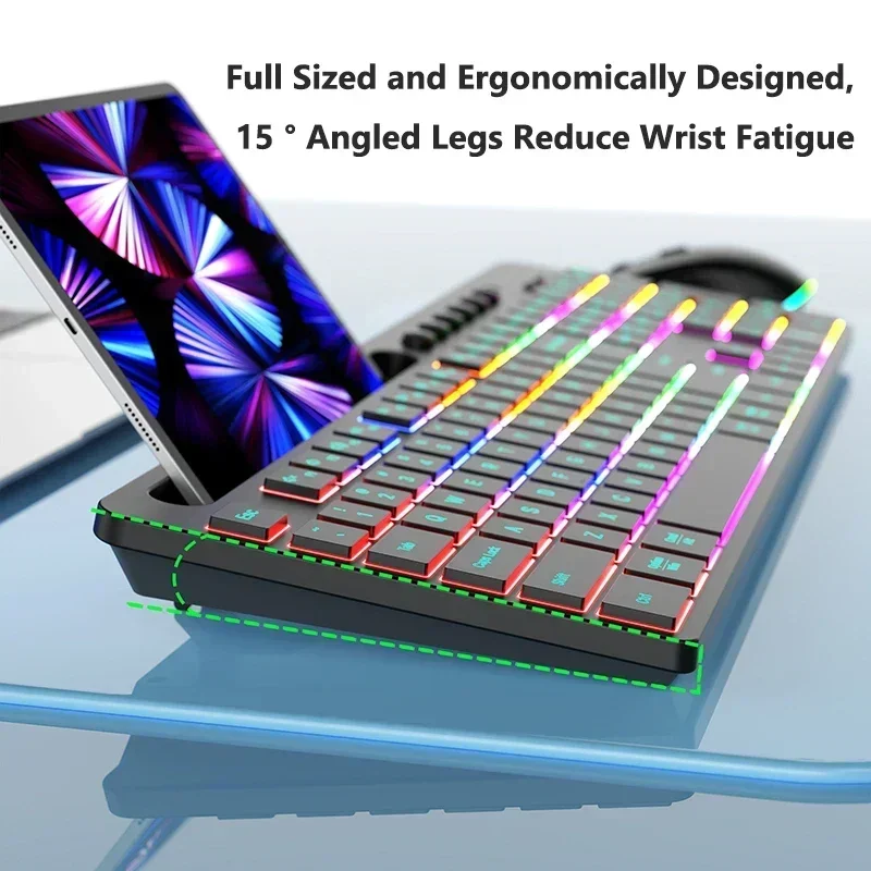 Wireless Keyboard and Mouse Combo with Backlit Full Size Ergonomic Keyboard with Phone Tablet Holder 2.4G Mouse for PC Laptop