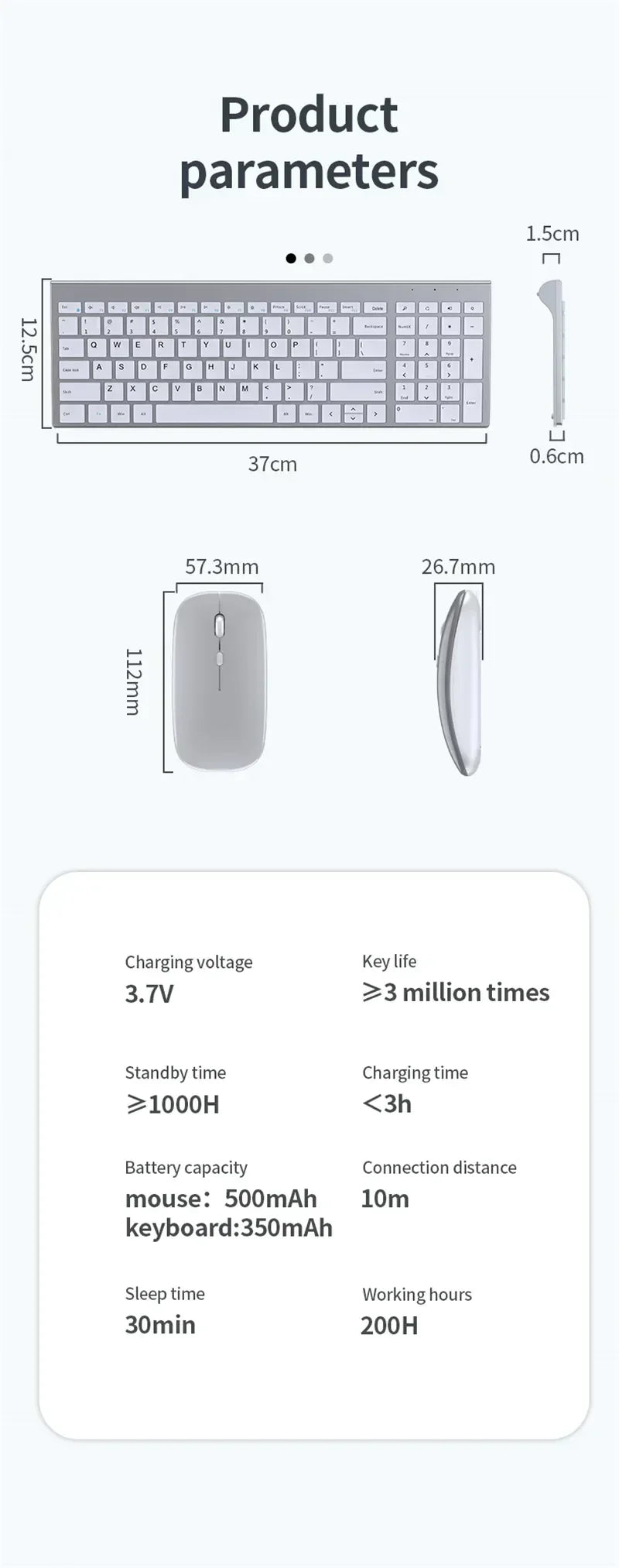 Wireless Keyboard Mouse Bluetooth 5.0 2.4G Combo Rechargeable Full Size Wireless Keyboard For Notebook Laptop Tablet iPad PC